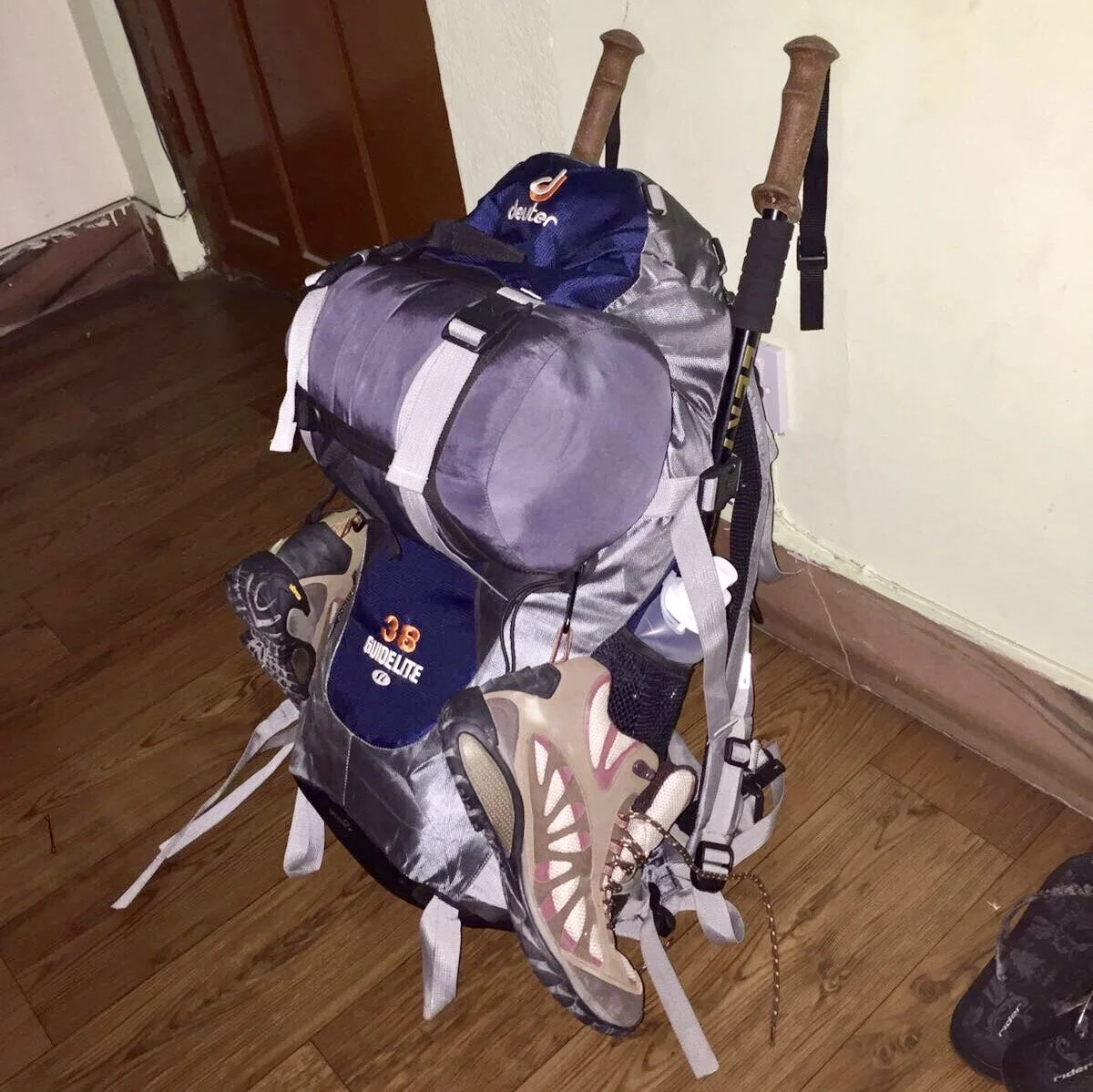 With the aid of my hiking poles, I pulled myself up and took my first step of the morning, the pain knocking the wind out of me. Hesitantly, I hoisted my backpack — a medium-sized, cheap knock-off Deuters one I’d picked up in Kathmandu — onto my back and fastened the waistband around my bruised hips.